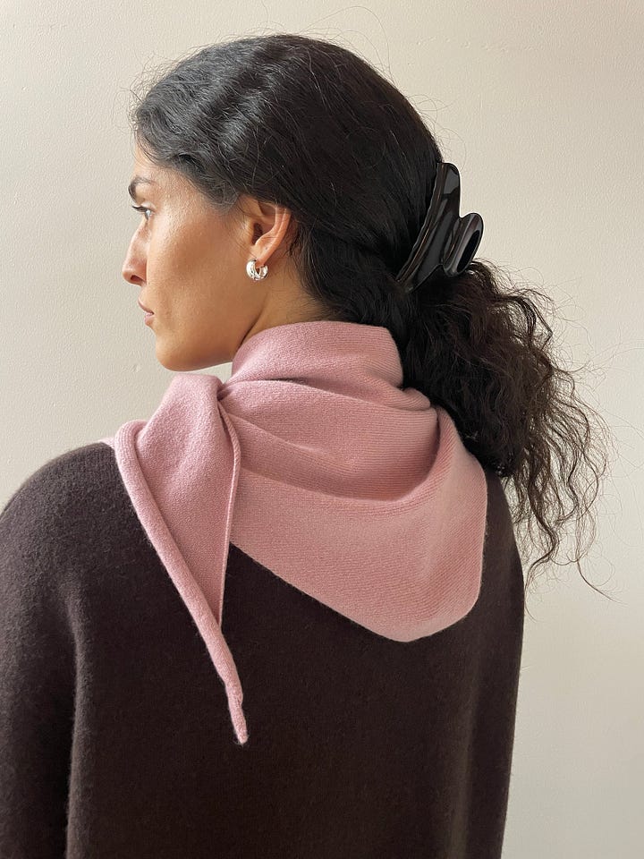 left: Extreme Cashmere bandana in Rosa; right: COS cashmere scarf