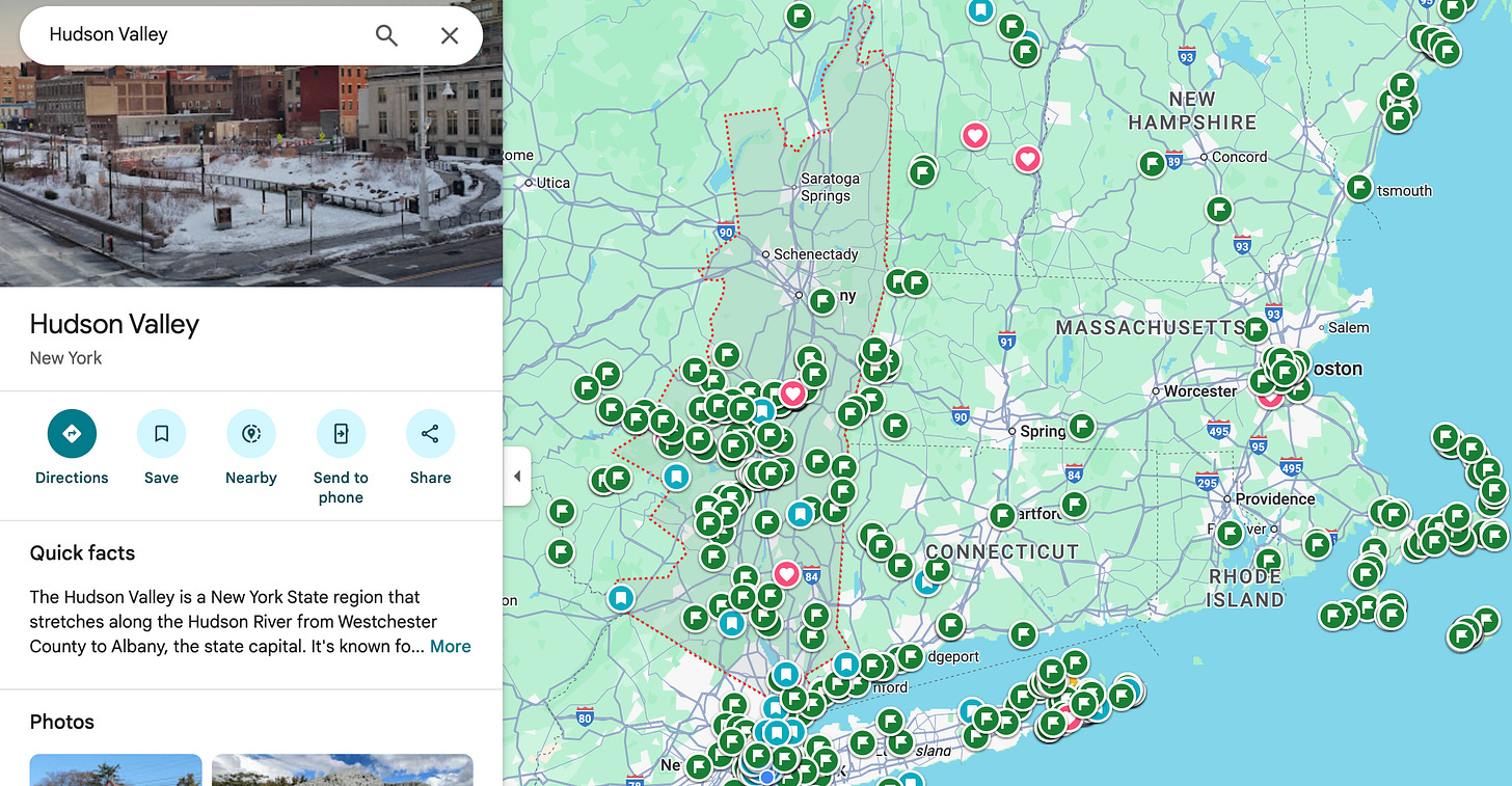 Lots of people like to call everything north of the NYC metropolitan area Upstate New York; however, the exact definition is subjective. Please see my Google Maps above with marked locations (most I haven’t been to and want to check out!) if you’re curious to know places and areas that I’m currently interested in going.
