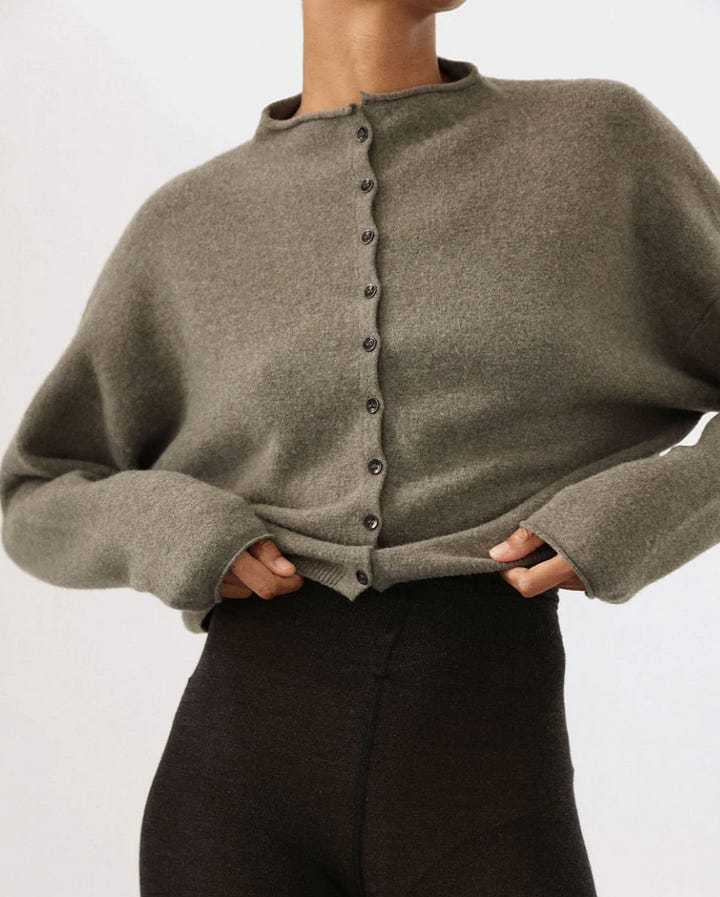 left: CAWLEY buttoned sweater; right: James Street Co Peri cardigan