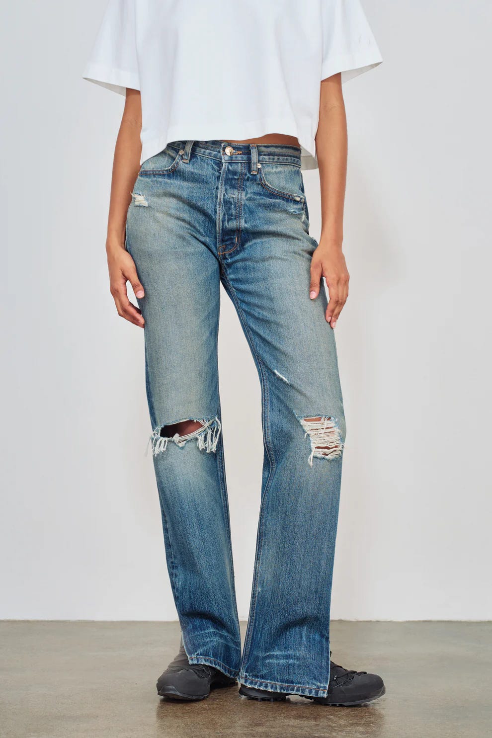 I’d have to admit, I love buying jeans but don’t find myself reach for them as often as I’d like. But I still love buying them! Below are my two top picks, and I love that they’re both styled with white T-shirt and sneakers.