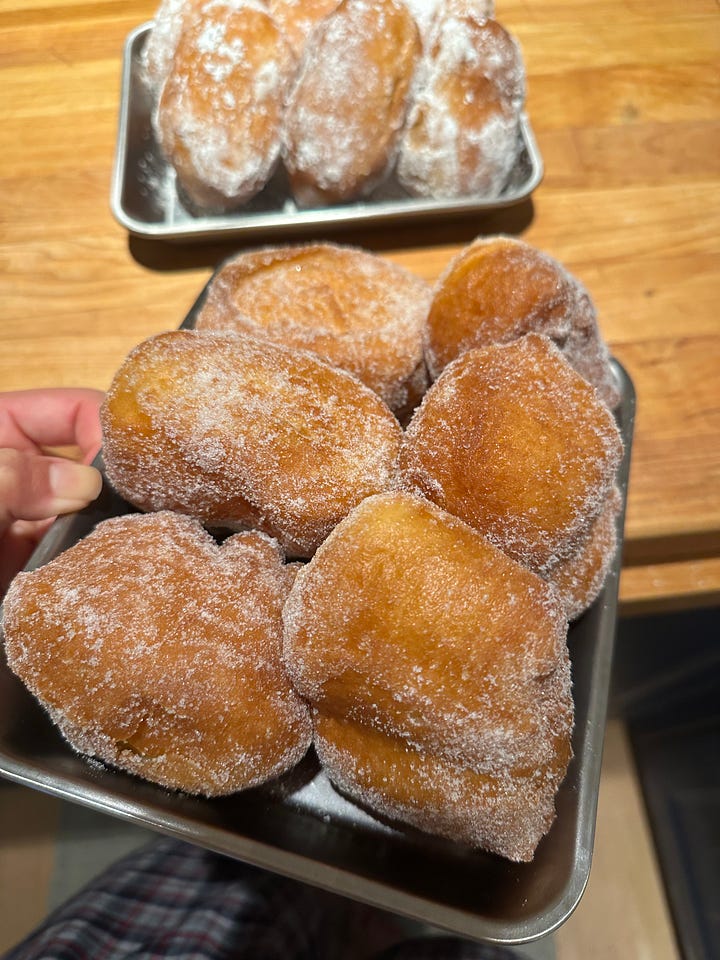 left: Simple Homemade Sugar Donuts (Yes, I’m aware I need to buy an actual donut cutter, lol!); right: Spam Musubi (no recipe, I just slice the spam block into 6, quickly fry and add a glaze (soy sauce, sugar, mirin, and water - and let it reduced and thickened. This is the sushi rice that I use. To season the rice: I add a tbsp of seasoning rice vinegar and a tbsp of soy sauce.)